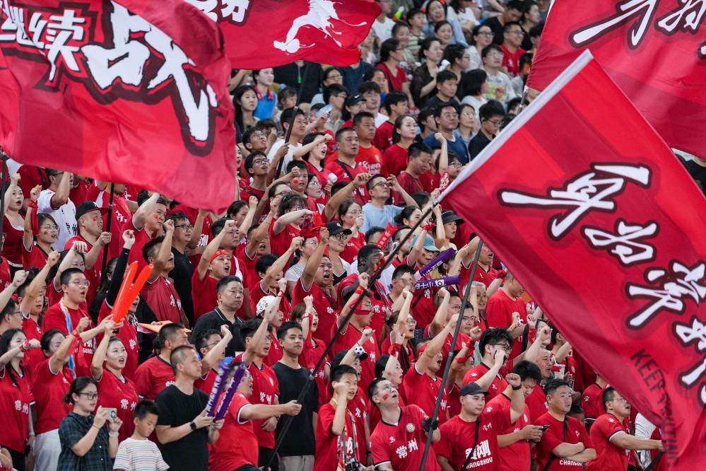 2025年7月20日,常州隊球迷在場邊加油。 新華社記者 李博 攝