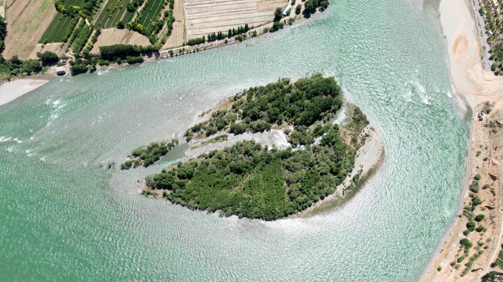 圖為青海省三江源地區聶洽曲與通天河交匯處(無人機拼接照片)新華社記者 伍志尊 攝