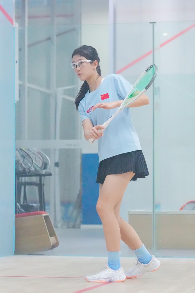 殷子媛的進步,也離不開父母的支持,他們在上海經營著壁球俱樂部,聘用了外籍教練。她介紹,自己8歲開始練球,平時周一到周五正常上學,放學后去球館練球,會利用在路上或睡前的時間學習。周末會花更多時間在學習上,并在空閑時與俱樂部的其他孩子打比賽。