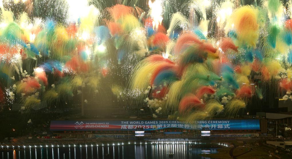 當第12屆世界運動會開幕式的焰火升騰,蓉城夜空流光溢彩,“天府之檐”披上綺衣華裳。一場涌動無限可能的盛會繽紛綻放,一幅包羅萬千氣象的畫卷徐徐展開。