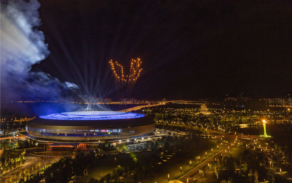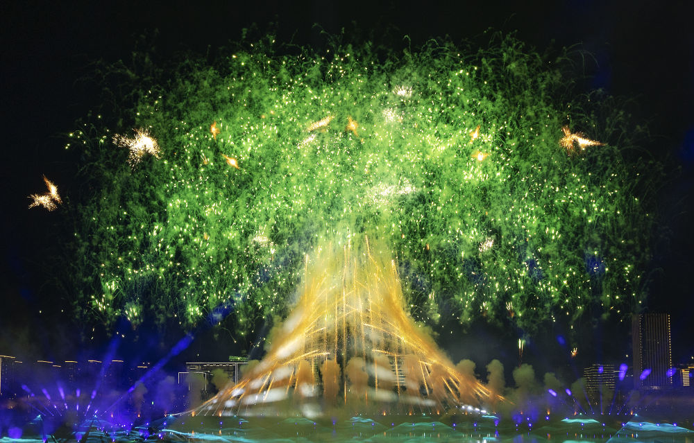 ↑這是成都第31屆世界大學生夏季運動會開幕式上的焰火(2023年7月28日攝)。