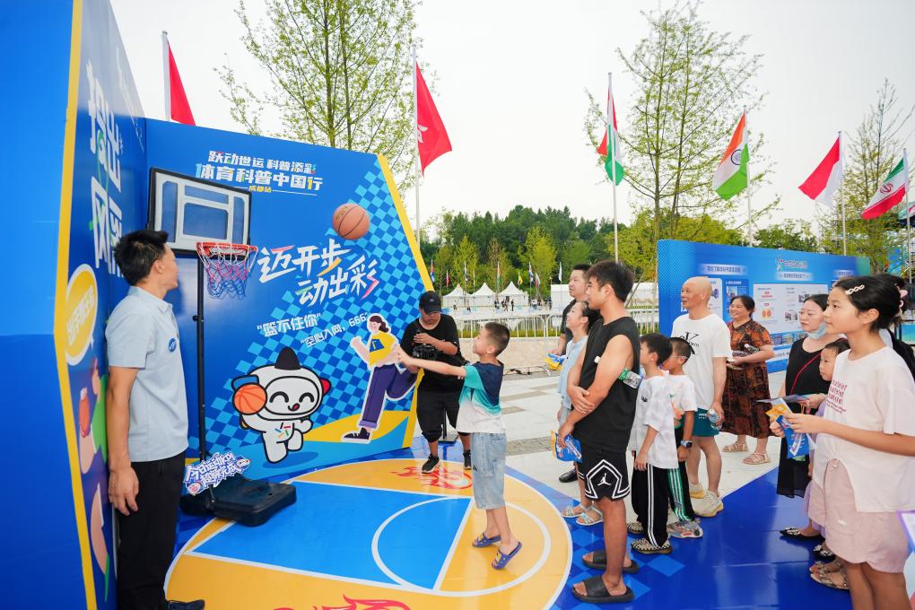 定點投籃、立定跳遠、丟沙包……作為世運會舉辦期間城市文化、體育項目展示與互動的平臺,世運廣場不僅將各項體育活動化作趣味游戲吸引公眾前來體驗,并設置科普展板揭秘運動背后的科學原理。通過參與“蓋章解鎖”,市民們可以在打卡游戲的過程中,學習科學健身知識,感受體育運動的多元魅力。