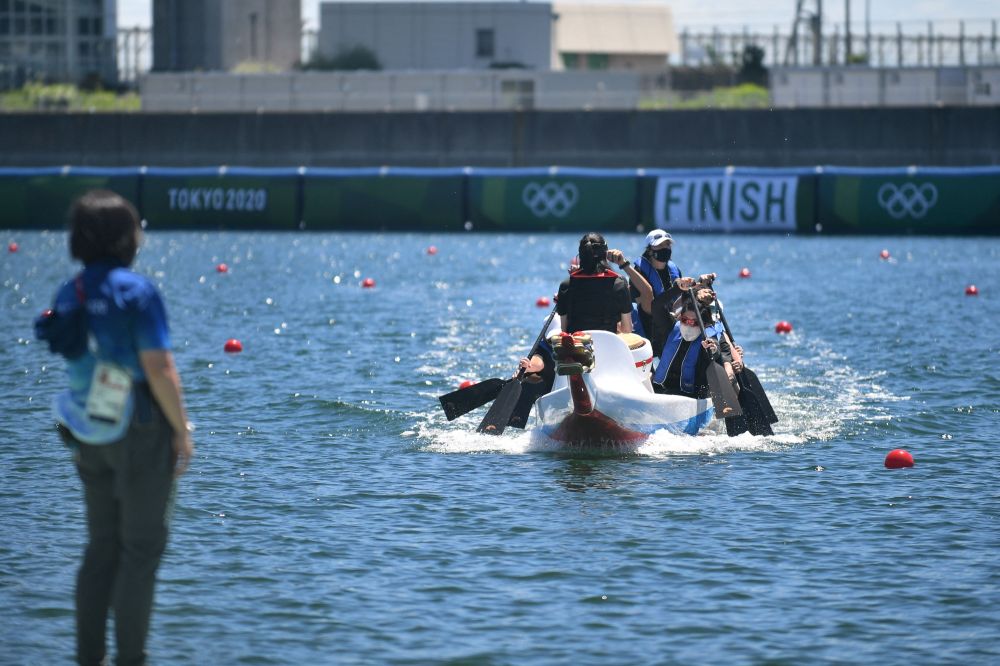 ↑這是2021年8月5日在東京奧運會上拍攝的作為展示項目的賽龍舟。