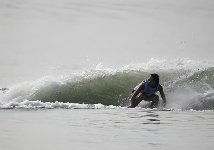 8月8日,烏克蘭選手索尼婭·索科洛娃在尾波沖浪比賽中。新華社記者 陳振海 攝