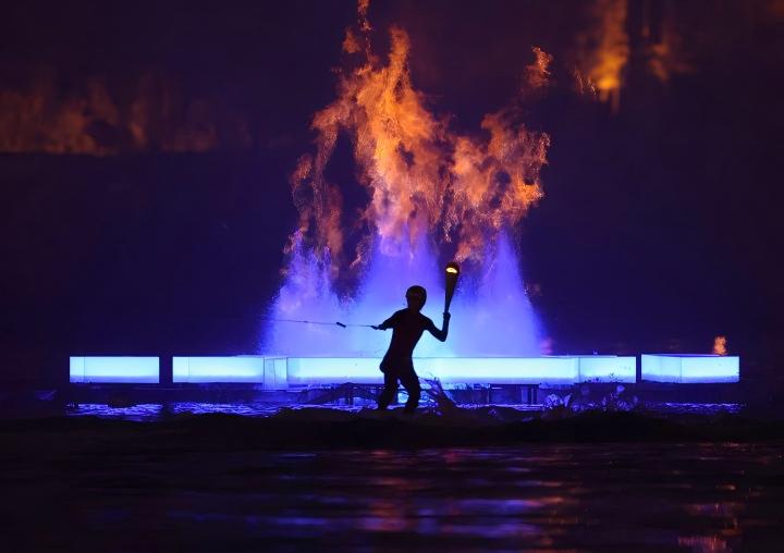 8月7日,主火炬在開幕式現場被點燃。新華社記者 陳斌 攝