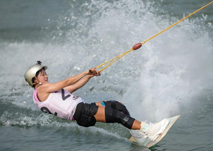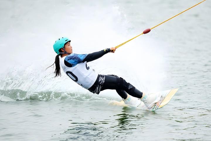 中國運動員韓秋斬獲女子尾波滑水項目冠軍
