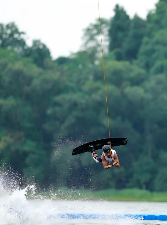 8月9日,中國選手羅暉在男子索道滑水復活賽中。新華社記者 貝赫 攝