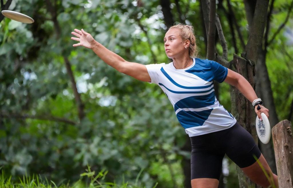 8月9日,萊特在擲準飛盤半決賽中擲飛盤。最終,愛沙尼亞隊不敵美國隊,無緣決賽。新華社記者 陳欣波 攝