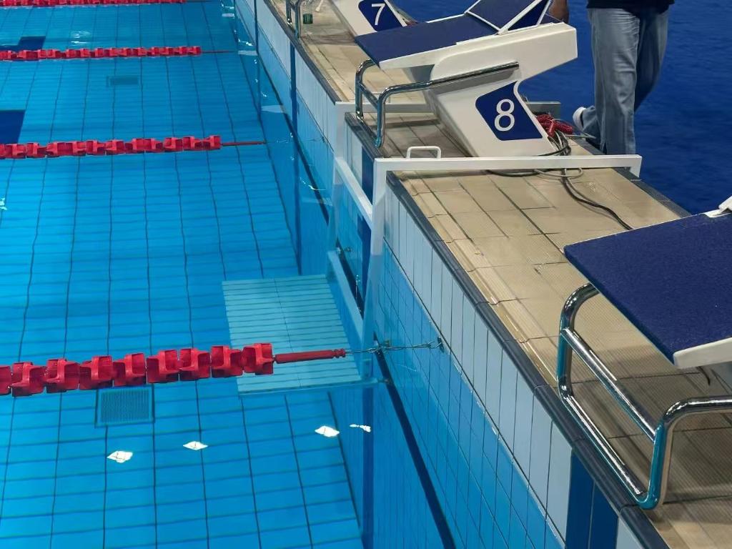 為了幫助救生和自由潛水比賽精準計時,成都體育學院三岔湖校區游泳館安裝了智能游泳出發臺。場館相關負責人王金陽介紹說,高級別賽事對泳池出發臺要求很高,要做到計時非常精確,因為哪怕0.1秒的誤差也可能對比賽結果產生影響,為此他們專門在泳池邊裝上了觸控板和芯片等智能計時設備,以確保達到比賽要求。