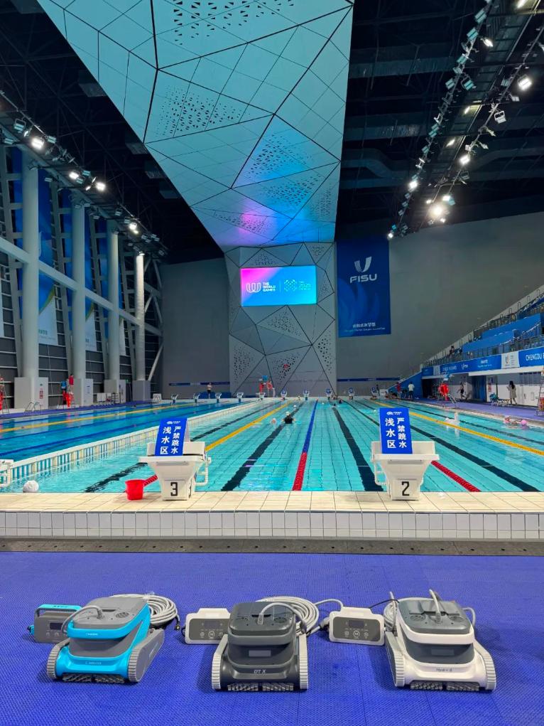 13日,世運會皮艇球項目在簡陽文體中心游泳館開賽,與運動員們一同出現在泳池里的還有幾位特殊的“清潔工”。據場館工作人員介紹,賽事期間場館投入了泳池清潔機器人設備,完成對泳池的日常維護及清潔任務。