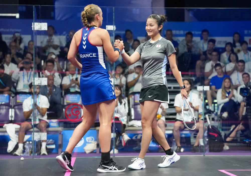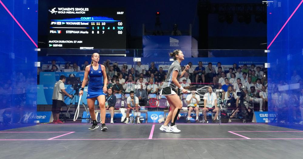 12日晚,成都世運會壁球女子單打決賽中,頭號種子渡邊聰美迎來了她本屆賽事的最后一個對手,也是她從少年時期就相識的朋友——法國人瑪莉·斯特凡。雖然第一局渡邊聰美以11:8取勝,但過程并不容易,兩人三次平分,斯特凡在局末一度將分差縮小到只有1分。