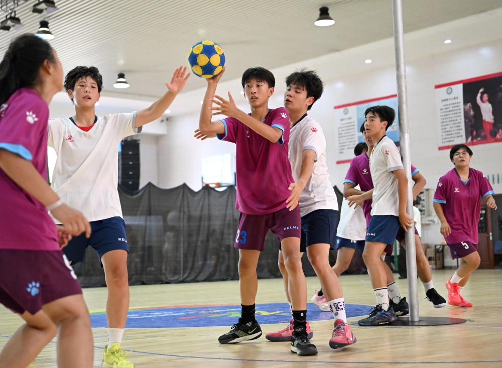 鄭州市第七十六中學荷球隊球員練習傳接球。新華社記者 李嘉南 攝