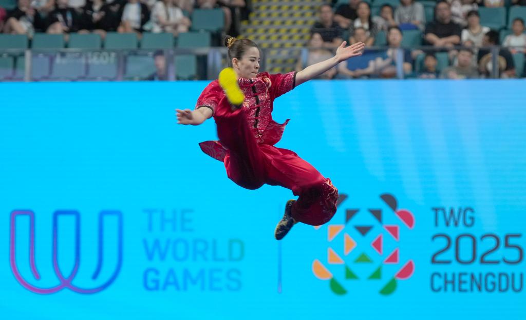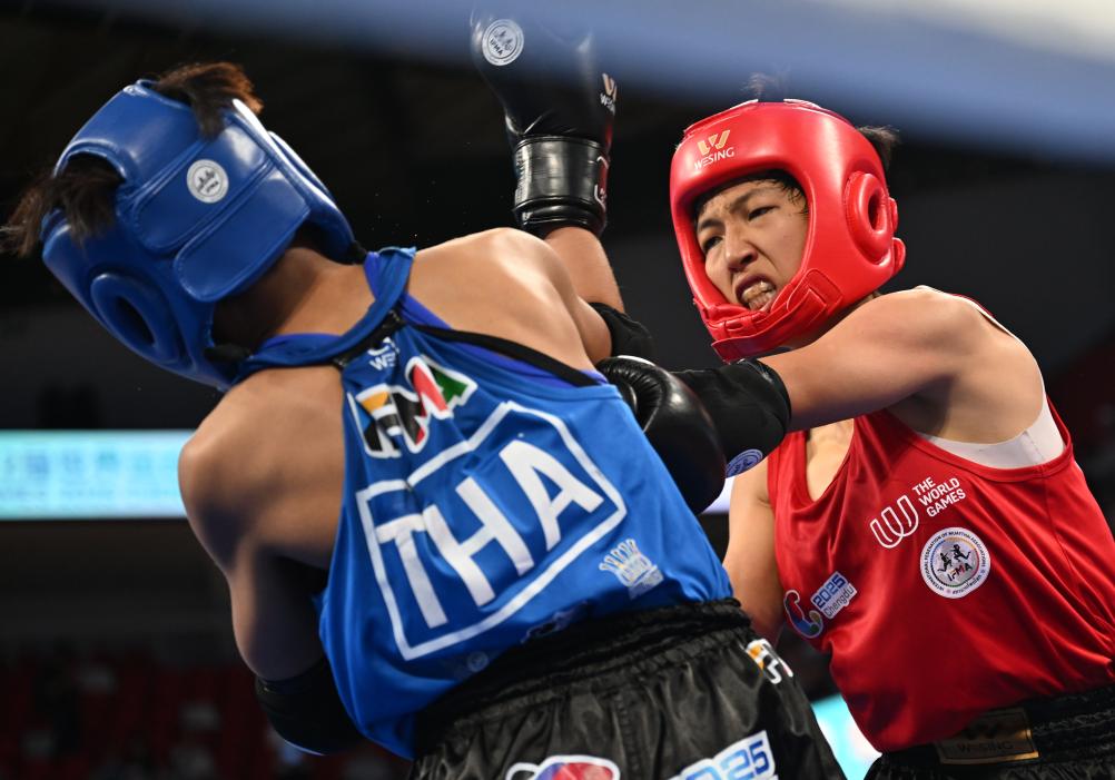 8月10日,在2025年成都世運會女子48公斤級泰拳決賽中,中國選手劉曉慧戰勝泰國選手奧諾克奪冠。新華社記者 張博文 攝