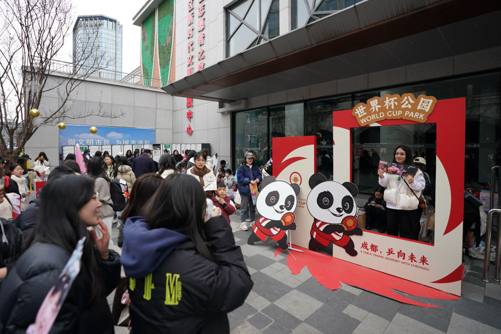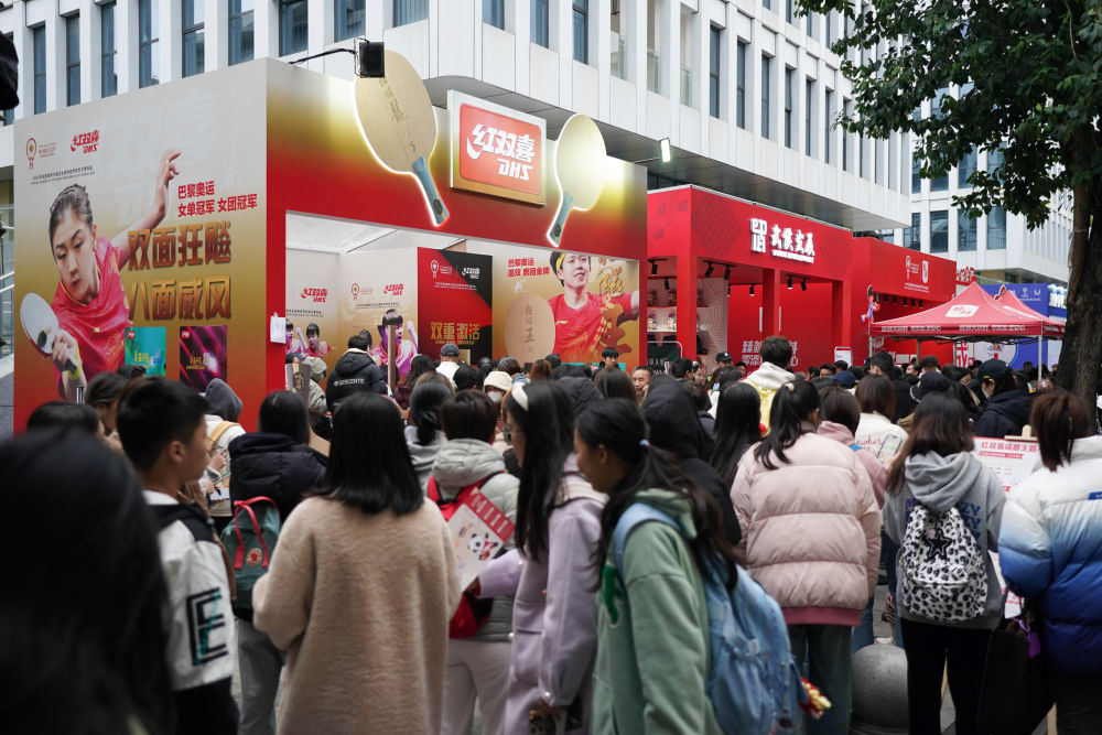 ↑2024年12月7日,球迷在成都參與2024乒乓球混合團體世界杯賽事周邊活動。新華社記者 胥冰潔 攝