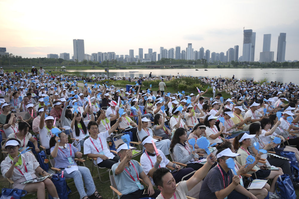 ↑8月7日,觀眾在世運會開幕式現場。新華社記者徐速繪攝
