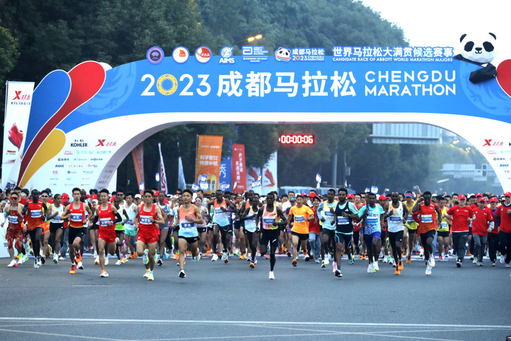 ↑2023年10月29日,成都馬拉松鳴槍開跑。新華社記者 沈伯韓 攝