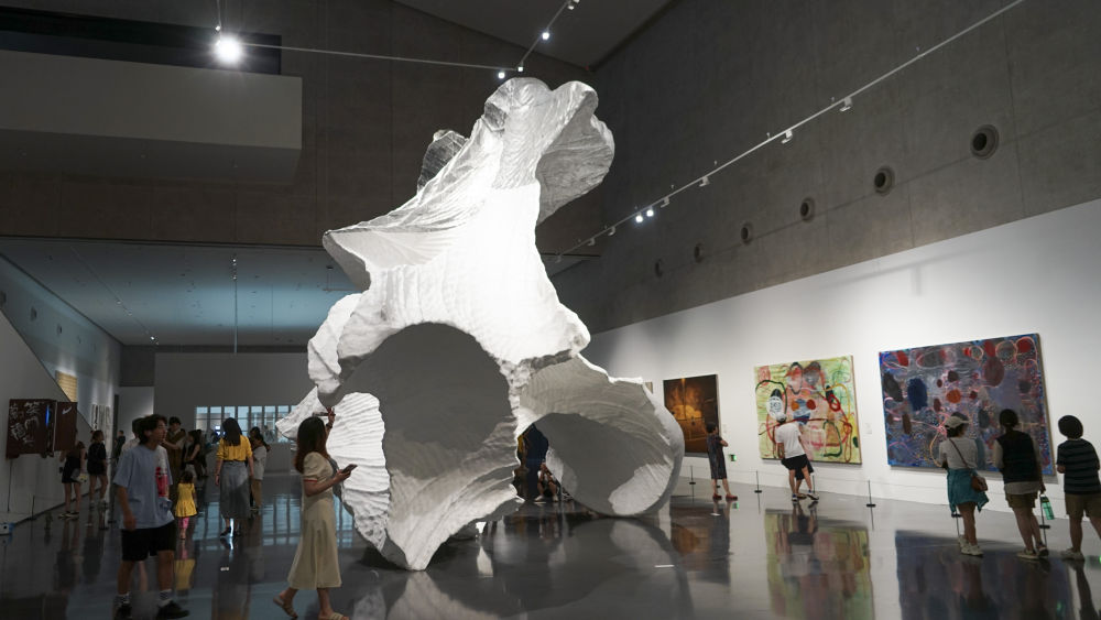 ↑2023年8月4日,觀眾在“2023成都雙年展”展廳內觀展?!?023成都雙年展”在成都大運會期間舉行,展覽人氣爆棚。新華社記者 尚文意 攝