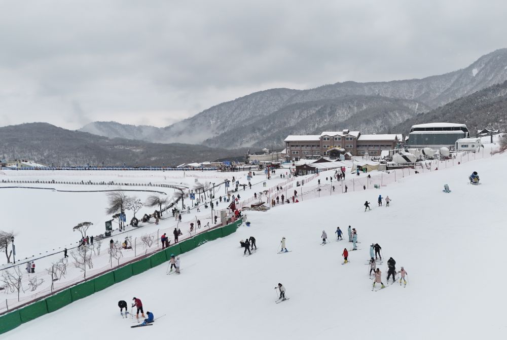 ↑1月14日,愛好者在成都西嶺雪山滑雪場滑雪。新華社記者 劉坤 攝