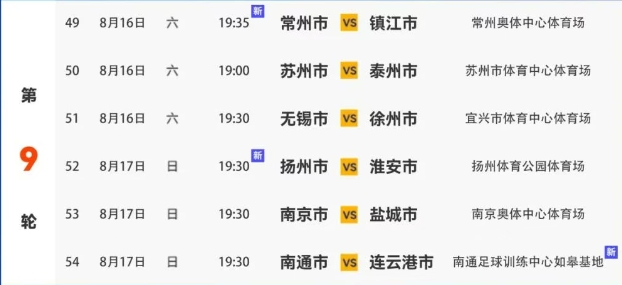 江蘇省城市足球聯賽第九輪對陣表