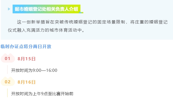 婚姻登記處在賽場外設立臨時辦證點