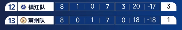 零進球的常州隊和七連敗的鎮江隊目前排名倒數第一、第二,可謂難兄難弟
