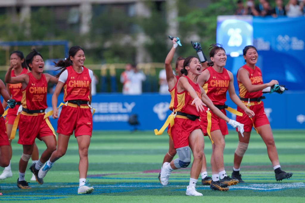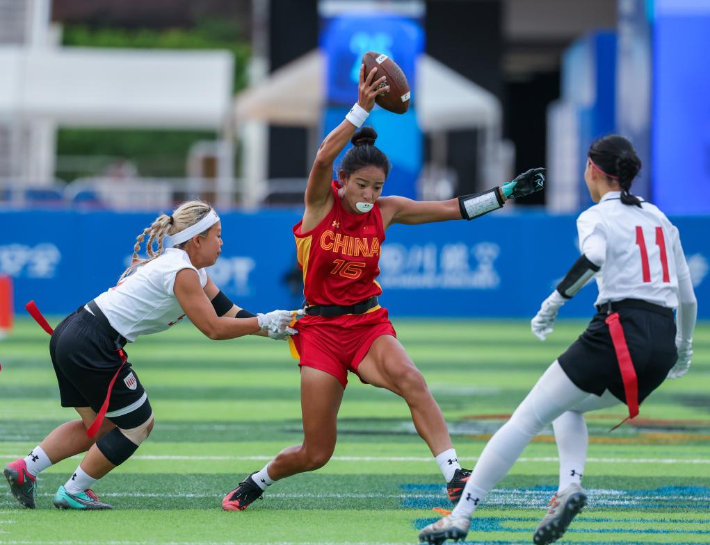 新華社成都8月16日電(記者季嘉東、許仕豪)歷史性的一刻到來了!在16日成都世運會女子腰旗橄欖球5-8名安慰賽半決賽中,中國隊以28:22戰勝日本隊。從選拔到建隊不滿五個月的中國隊,獲得了隊史第一場正式比賽勝利!
