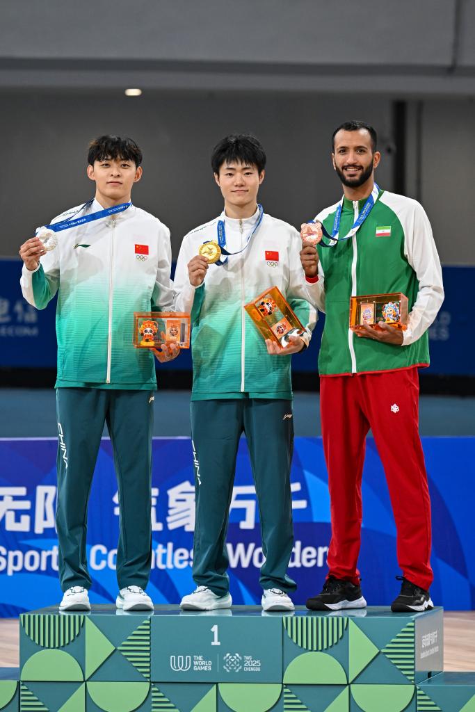 “我非常激動和開心,能夠在比賽中發揮出自己正常的水平。作為成都人,在家門口參加世運會,其實我感覺有些緊張?!辟惡髲堫椪f,“好在決賽是面對隊友,我們彼此很熟悉,也為中國隊鎖定了金銀牌,所以沒有太大壓力,就是正常發揮,至于是誰最終能夠獲勝,其實也有運氣的成分在?!?/p>
