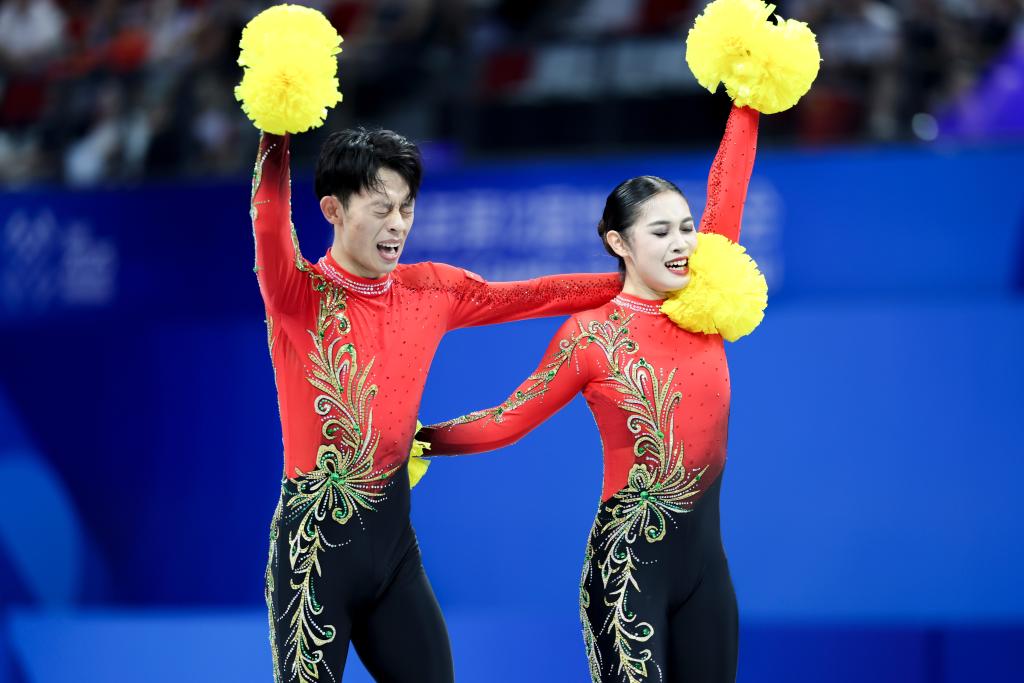 首次進入世界運動會的啦啦操大項也在16日收官。在唯一的小項雙人花球中,兩對中國組合李嘉欣(女)/王亞洲(男)和馬科唯(男)/林奕航(男)經過兩輪半決賽的比拼雙雙躋身決賽。這項比賽不限制性別,選手中多為兩名女性,也有李嘉欣/王亞洲這樣一男一女的搭配,馬科唯/林奕航是現場唯一一對兩名男性的組合。