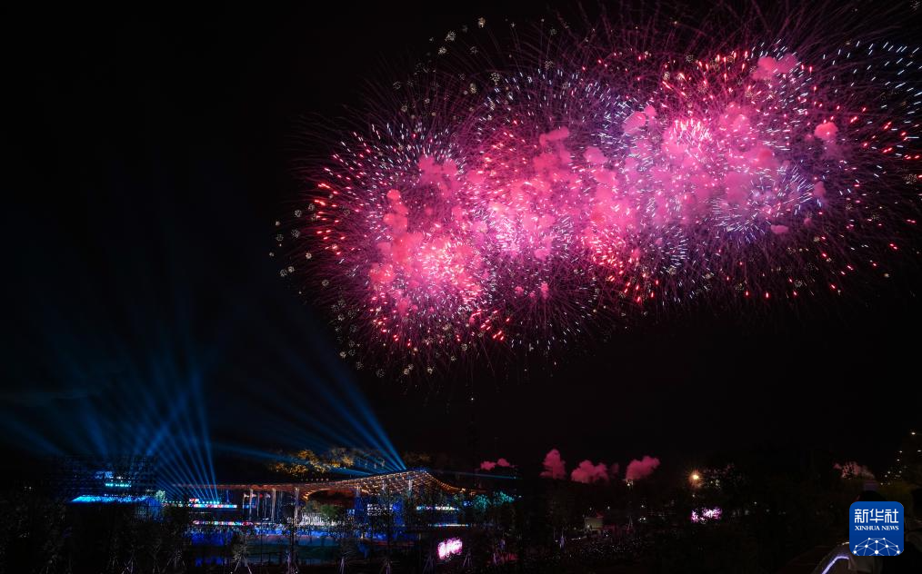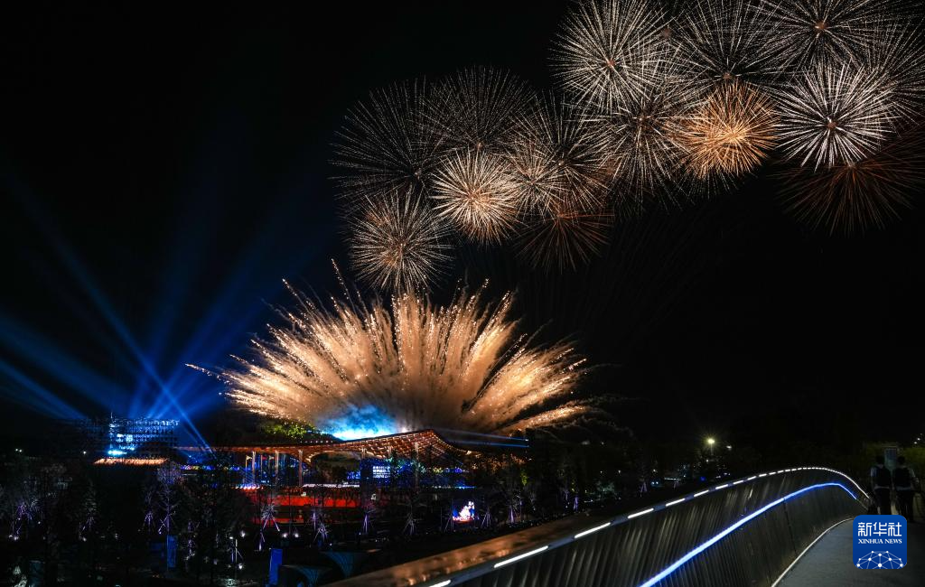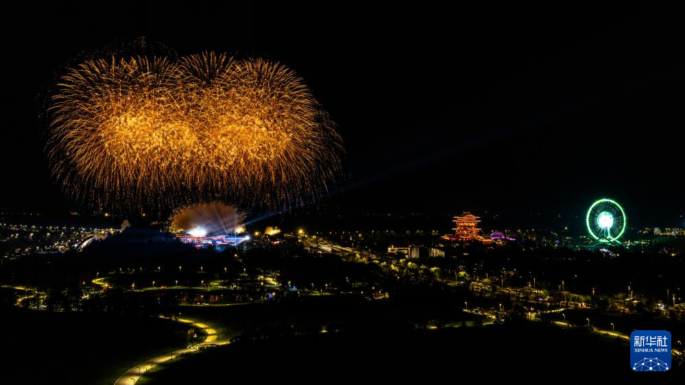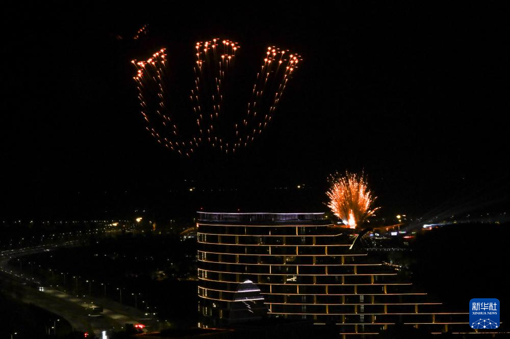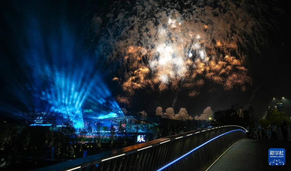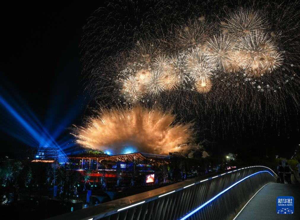 這是8月17日拍攝的閉幕式上的焰火表演。