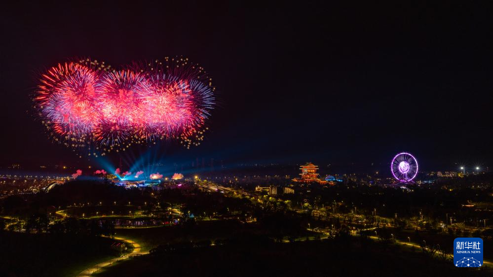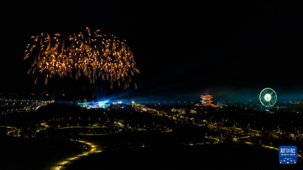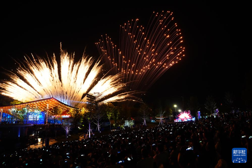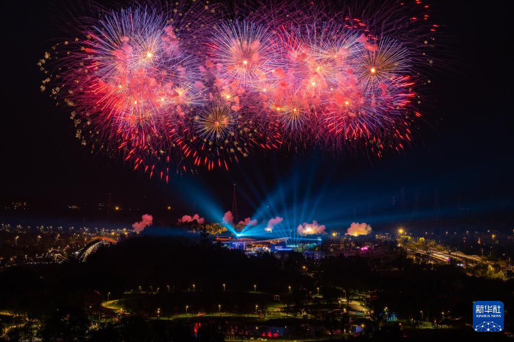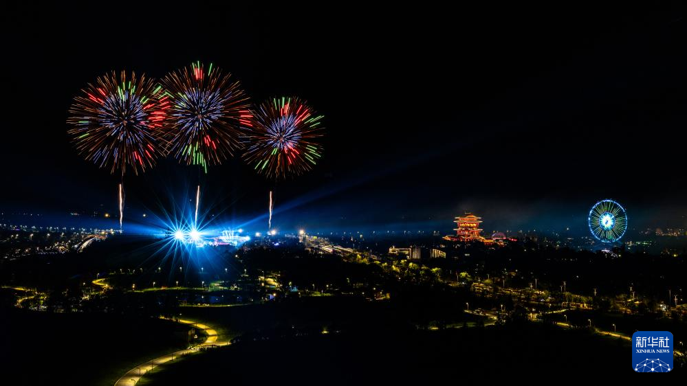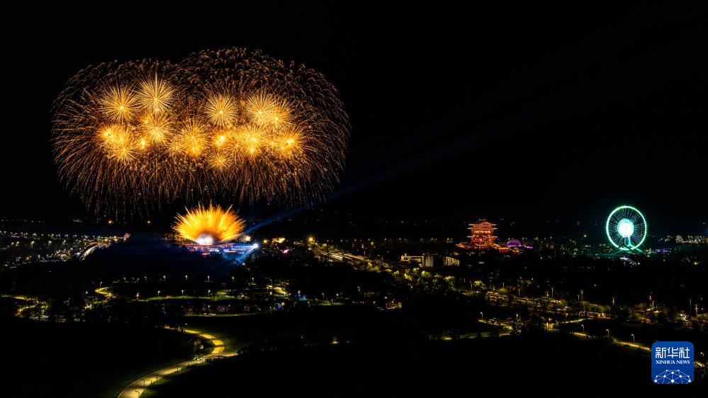 這是8月17日拍攝的閉幕式上的焰火表演。