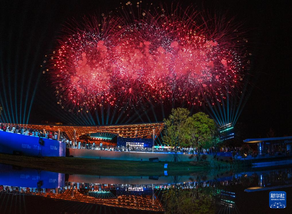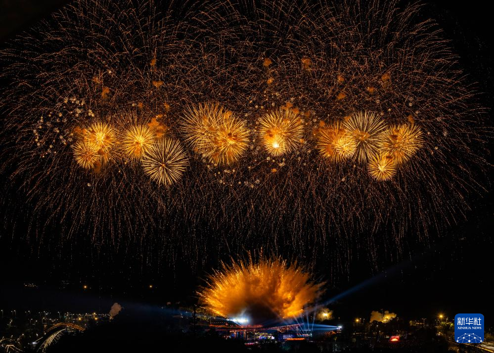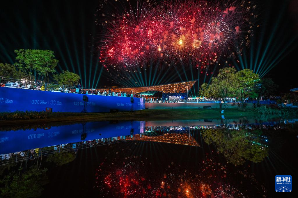 這是8月17日拍攝的閉幕式現場焰火表演。