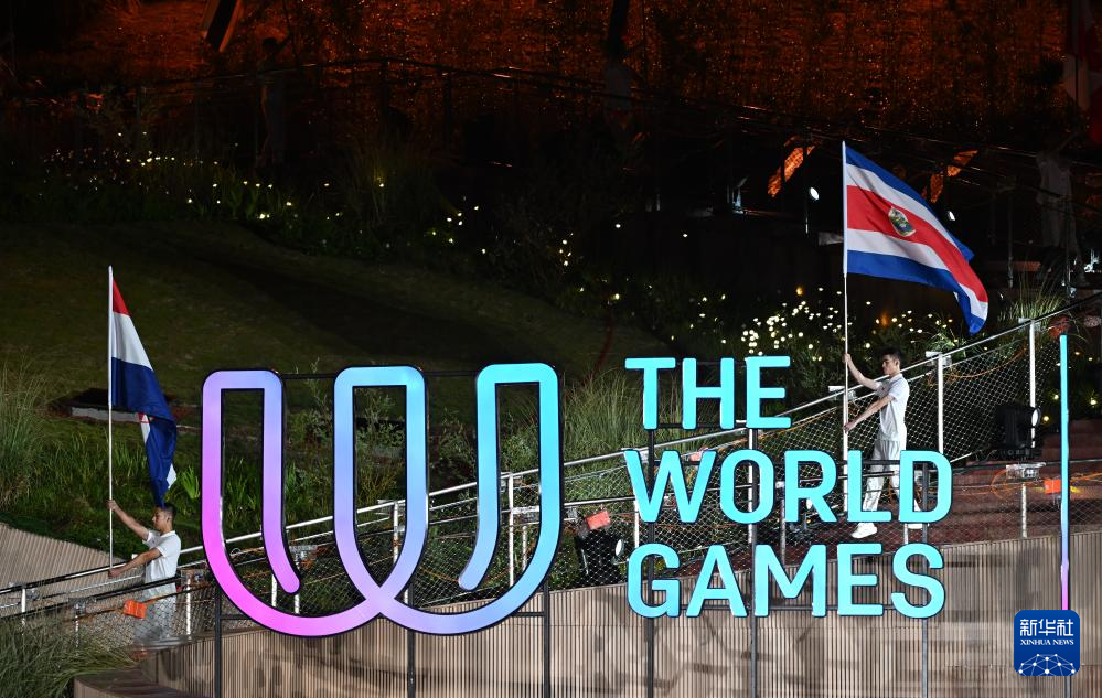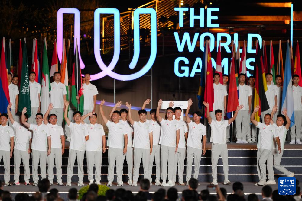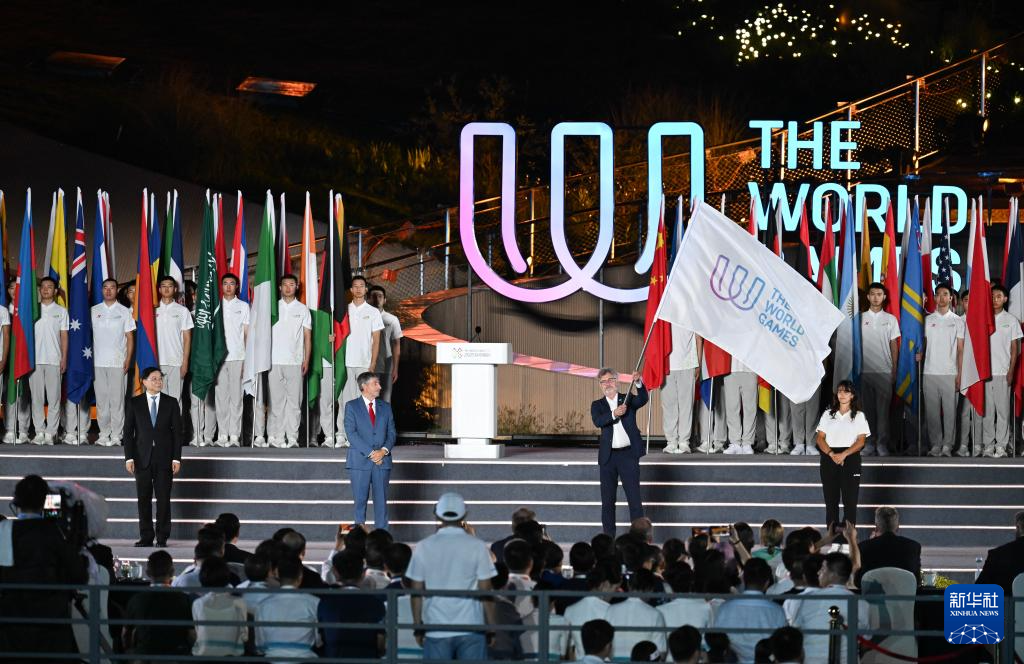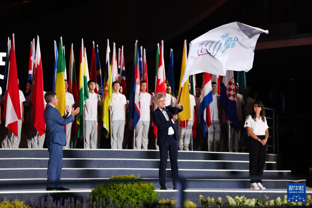 這是8月17日在閉幕式上拍攝的國際世界運動會協會會旗交接儀式。