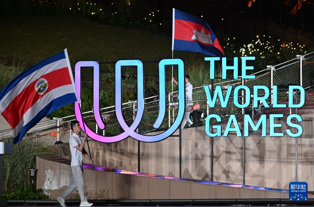 這是8月17日拍攝的閉幕式上的國際世界運動會協會會旗降旗儀式。