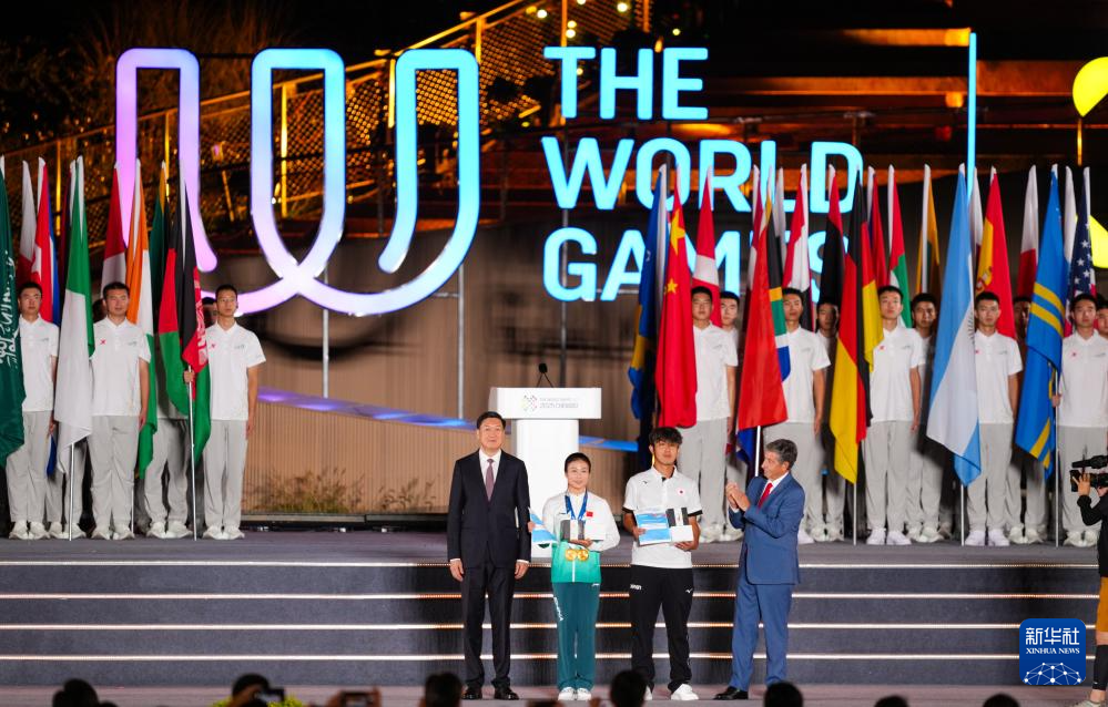 8月17日,下一屆世界運動會主辦城市代表在閉幕式現場致辭。