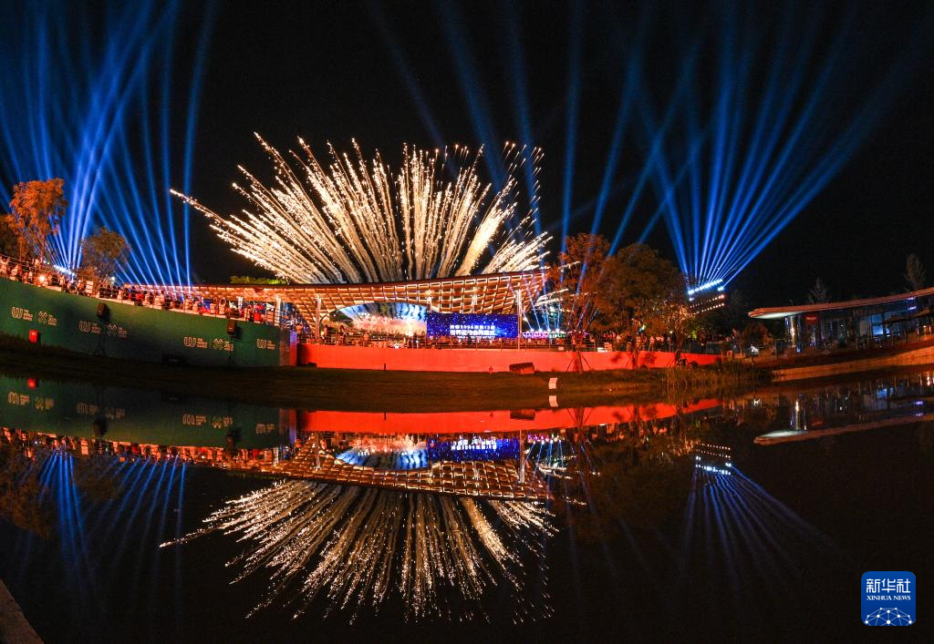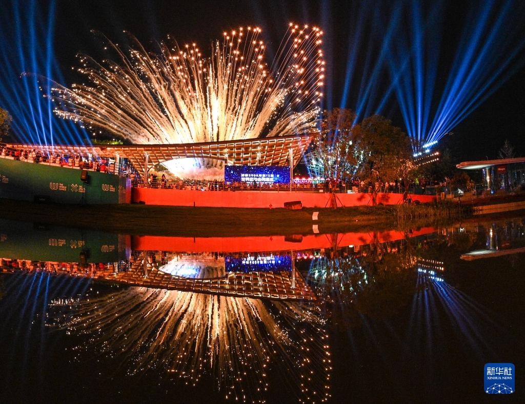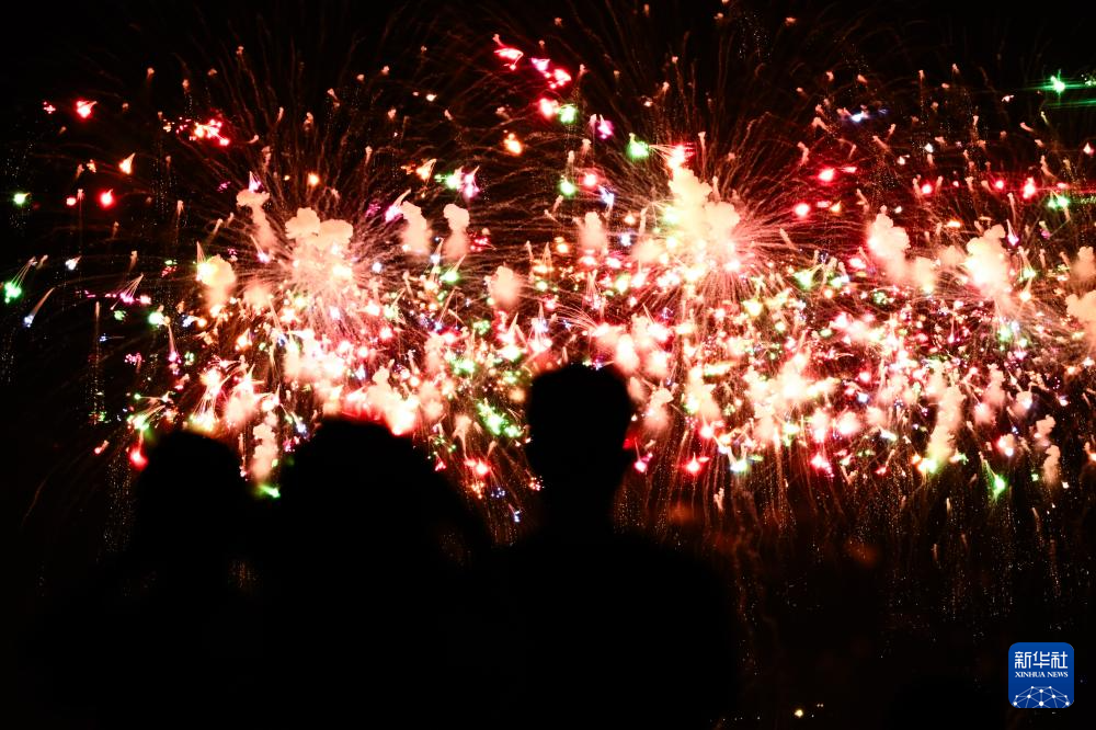 8月17日,觀眾觀看閉幕式現場焰火表演。