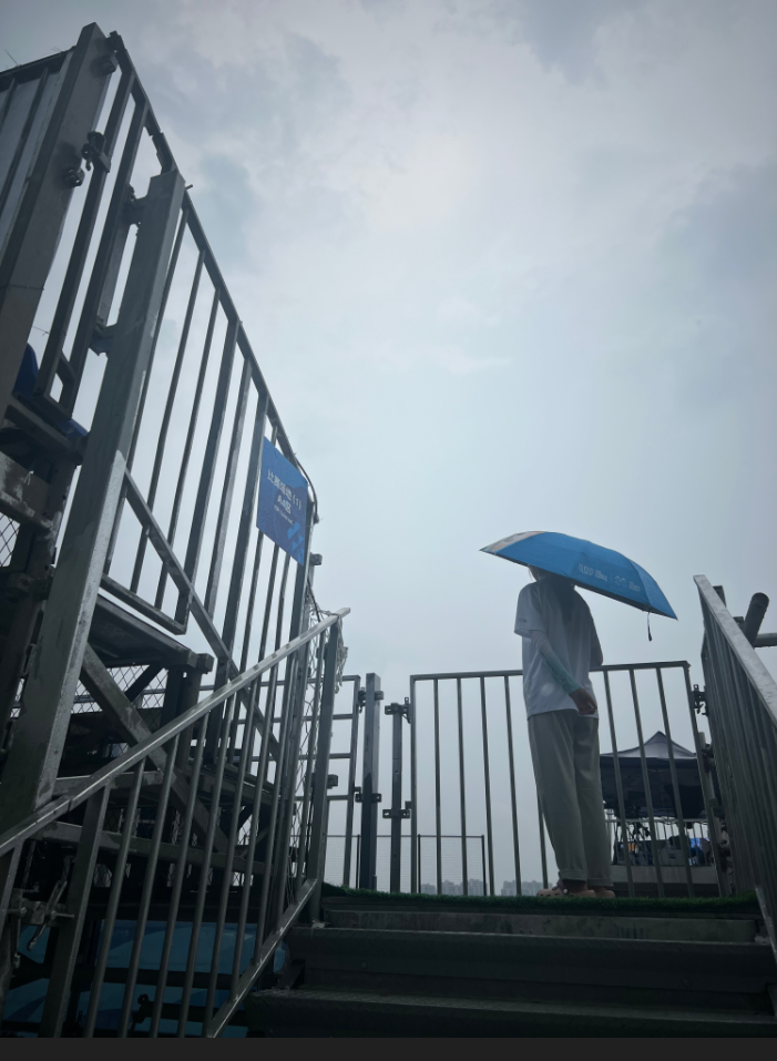 17日午后,一場細雨悄然而至,將興隆湖染成了黛青色。賽場上一位工作人員拍了拍同事的肩膀,笑著說“打起最后的精神”。