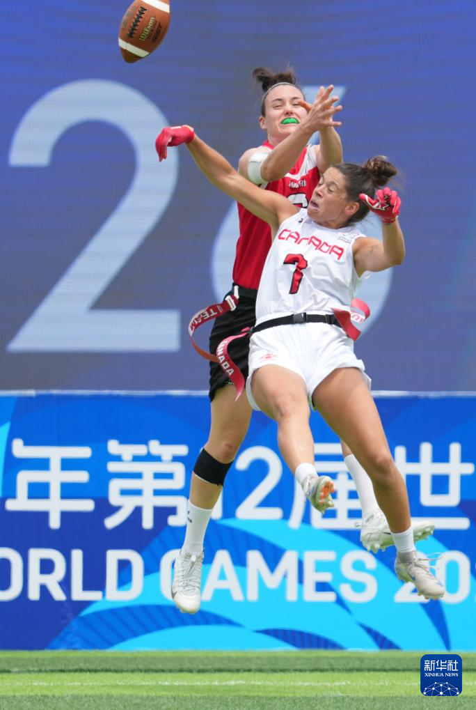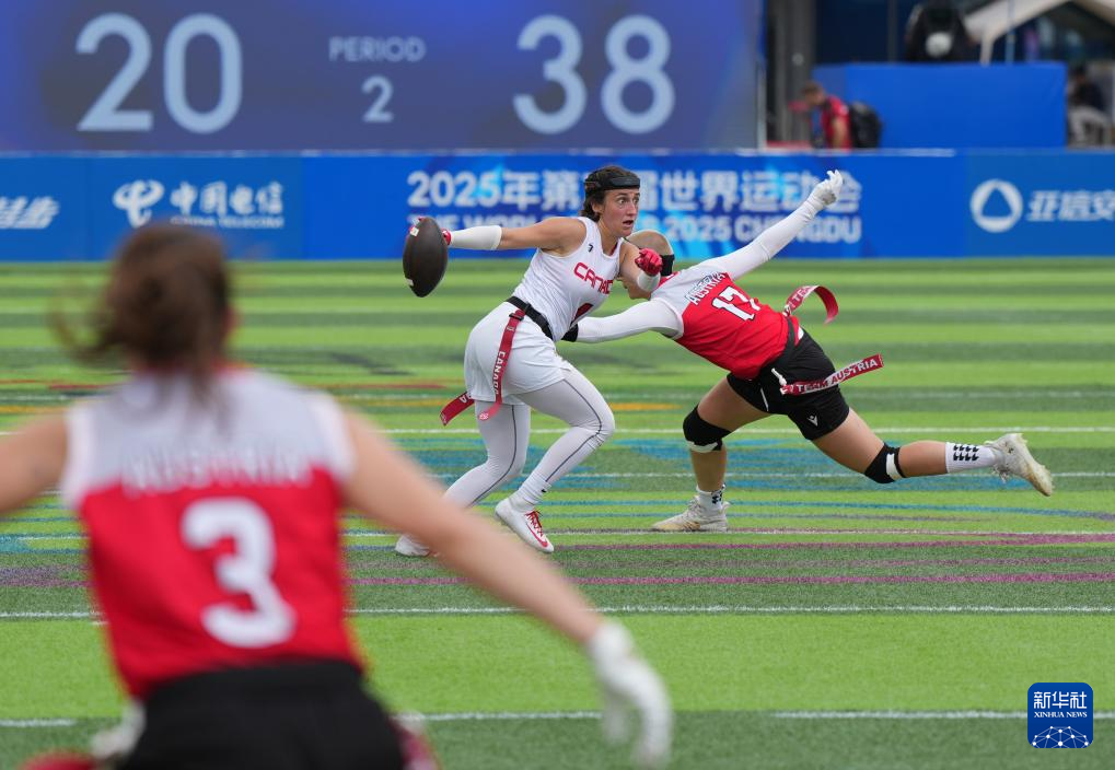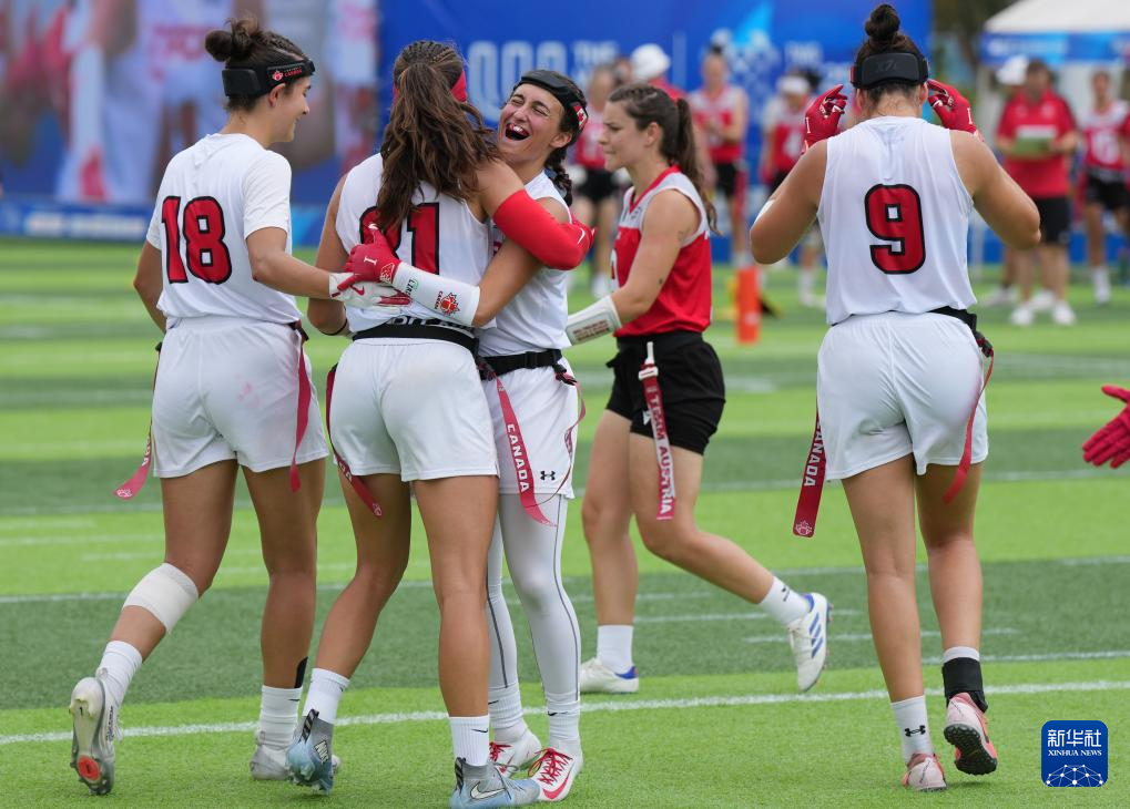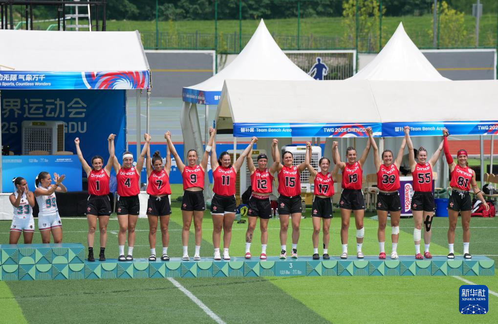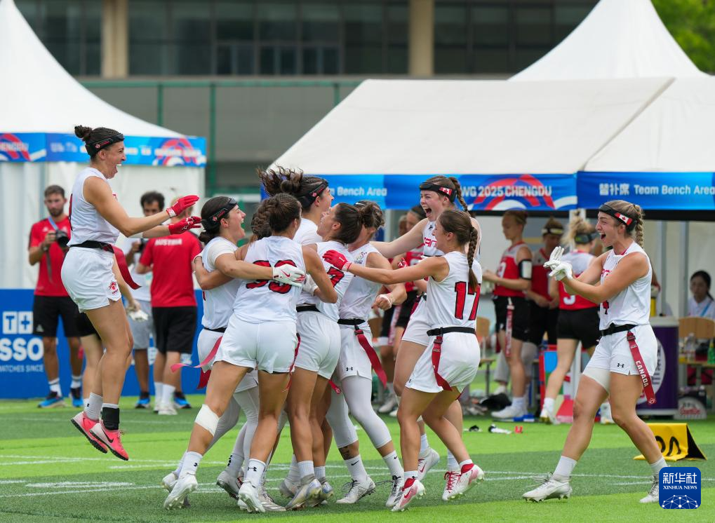 當日,在2025年成都世運會腰旗橄欖球女子銅牌賽中,加拿大隊38比20戰勝奧地利隊,獲得銅牌。