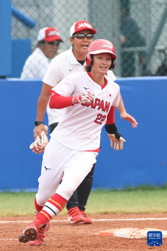 8月17日,日本隊球員藤森捺未(中)在比賽中跑壘。