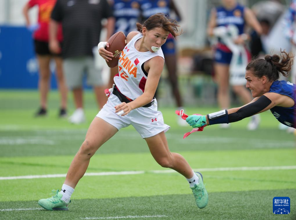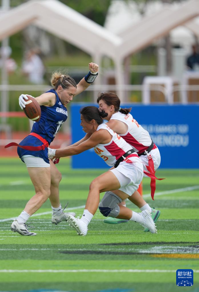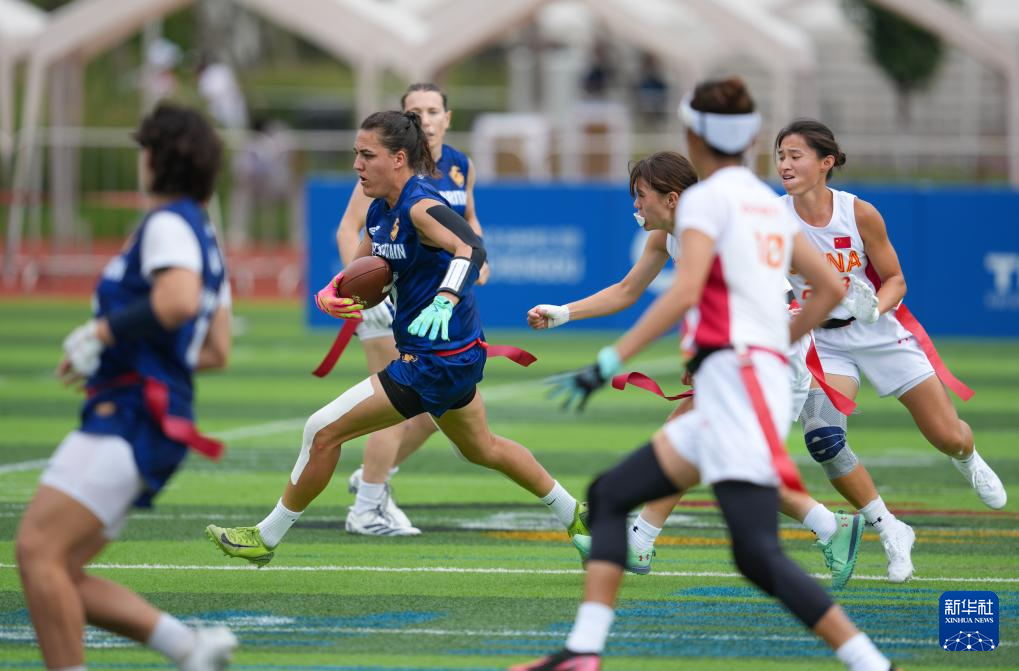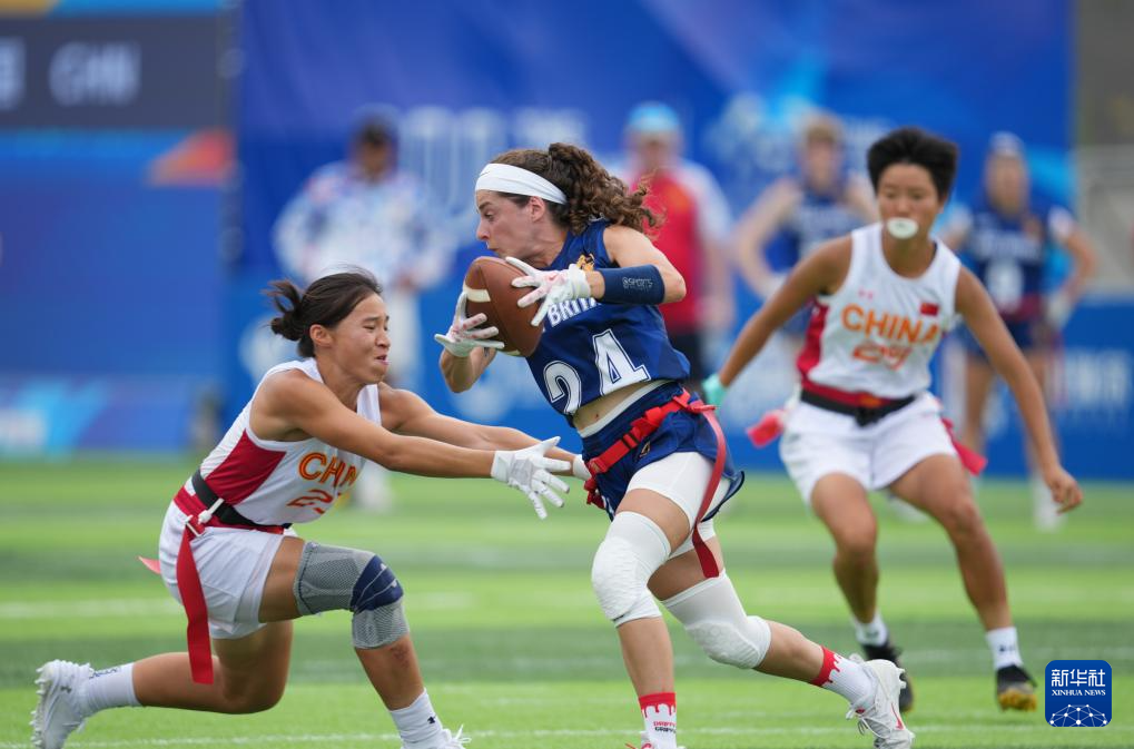 當日,在2025年成都世運會腰旗橄欖球女子第5名爭奪賽中,中國隊不敵英國隊,獲得第六名。
