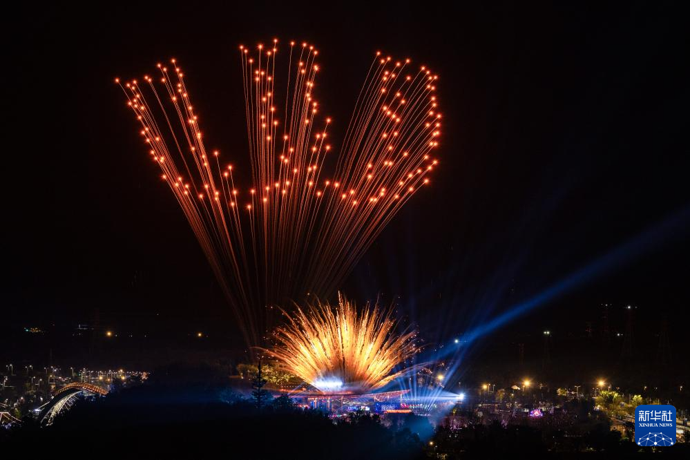 這是8月17日拍攝的閉幕式現場焰火表演。