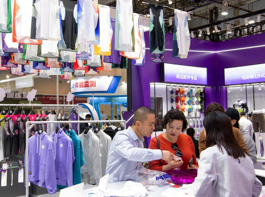 1月4日,觀眾在第五屆中國馬拉松博覽會現場挑選體育運動服裝。當日,為期三天的第五屆中國馬拉松博覽會暨2024福建省路跑產業博覽會在廈門國際會展中心開幕。新華社記者 魏培全 攝