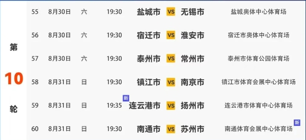 江蘇省城市足球聯賽第十輪對陣表