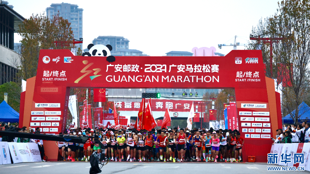 2024廣安馬拉松賽參賽選手從起點出發。新華網發(張可凡攝)