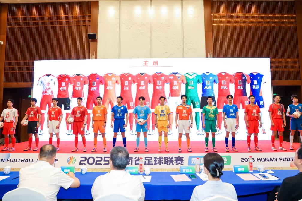 2025湖南省足球聯賽媒體見面會球衣展示環節。