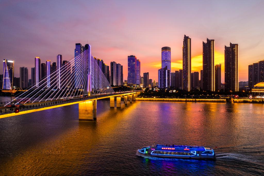 7月16日拍攝的長沙湘江(無人機照片)。新華社記者 陳思汗 攝
