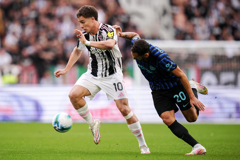 當日在都靈進行的“國家德比”精彩紛呈,開局一陣攻守后,主隊“老婦人”先利用一次行云流水的配合拔得頭籌。第14分鐘,凱利在門前接布雷默的傳中球,推射破門。第30分鐘,恰爾汗奧盧在弧頂處接隊友奧古斯托的回傳,迎球而上,遠射將球從一眾防守球員的縫隙中打進,國米扳平比分。第38分鐘,伊爾迪茲回敬對手一粒世界波遠射,尤文再度領先。