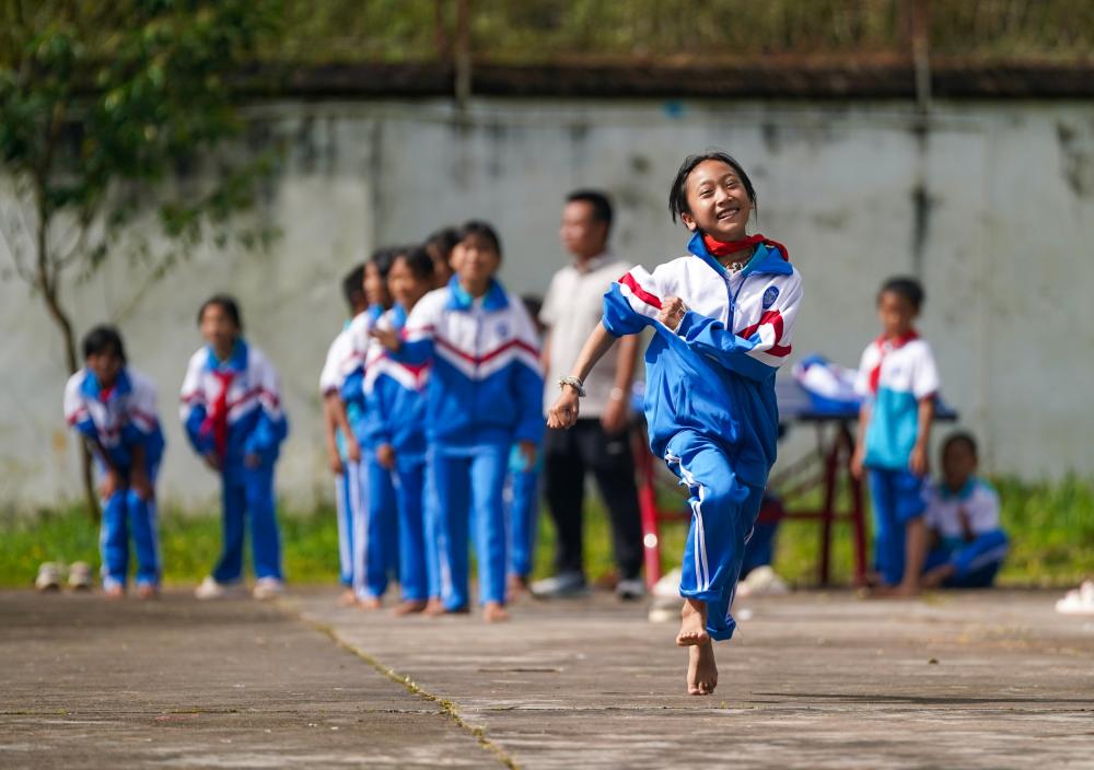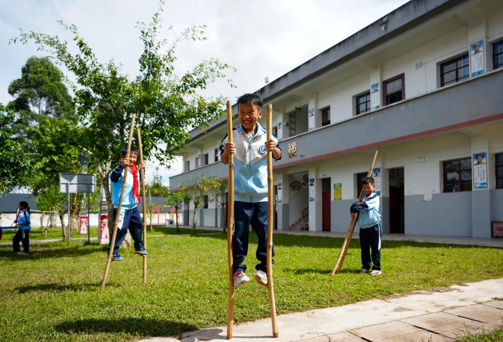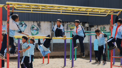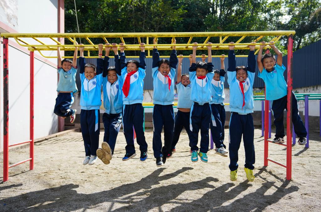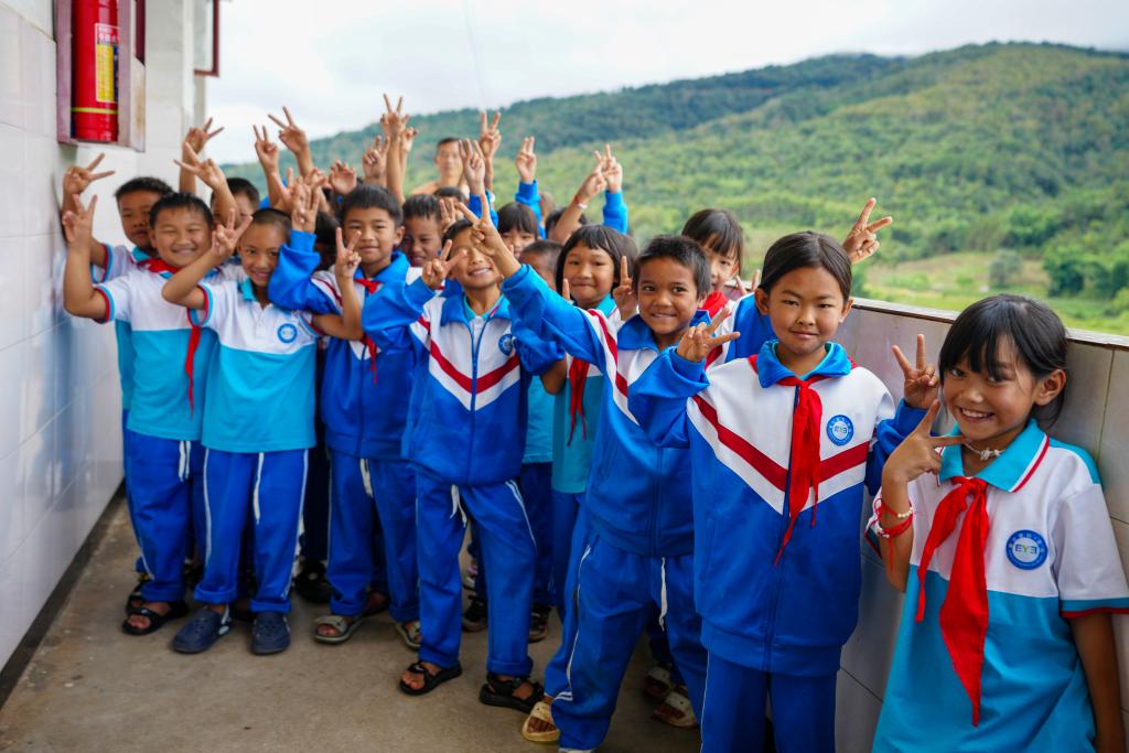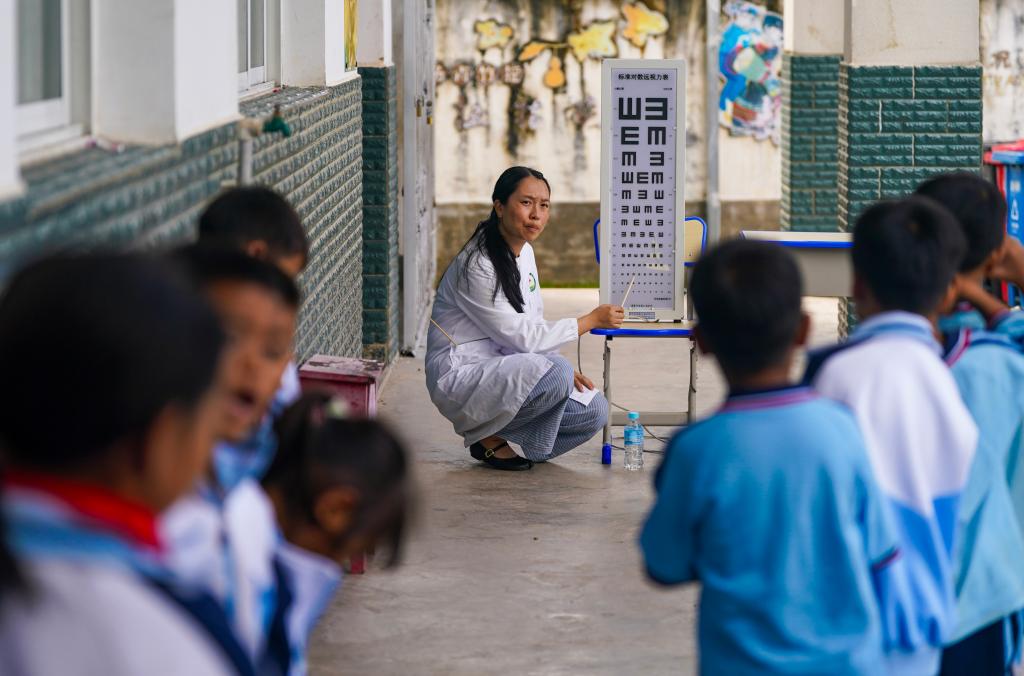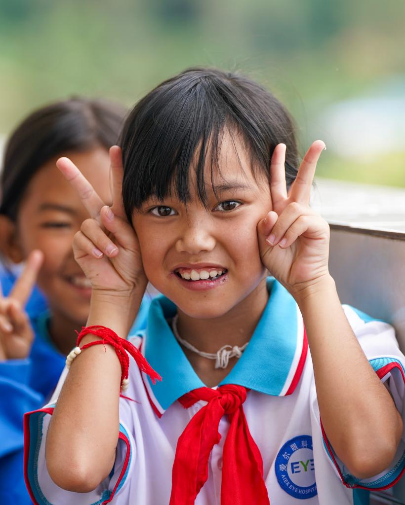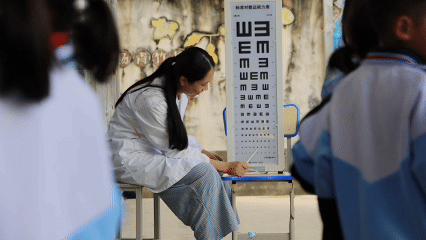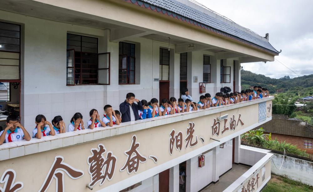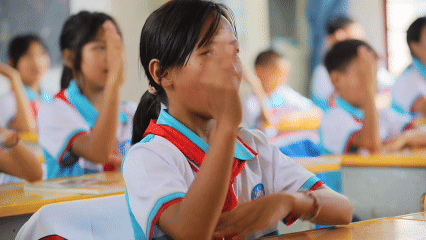 老師們會和孩子們一起做眼保健操、眺望遠處