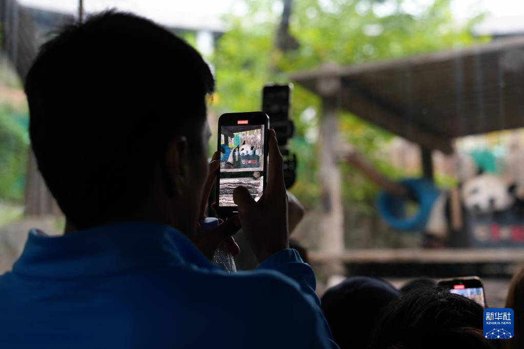 9月23日,一名球員在大連森林動物園拍攝大熊貓。