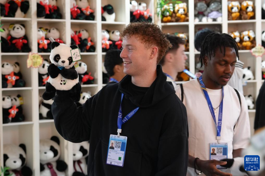 9月23日,一名球員在大連森林動物園選購大熊貓玩偶。