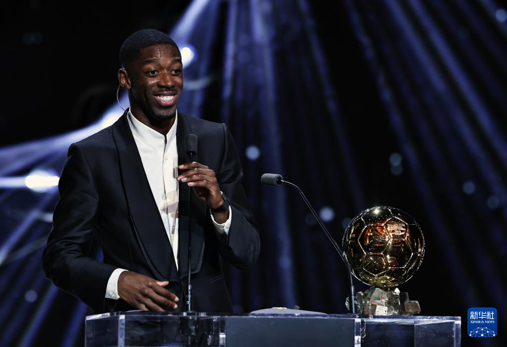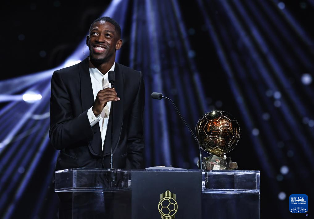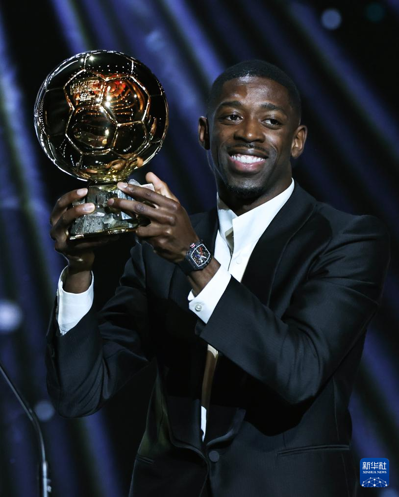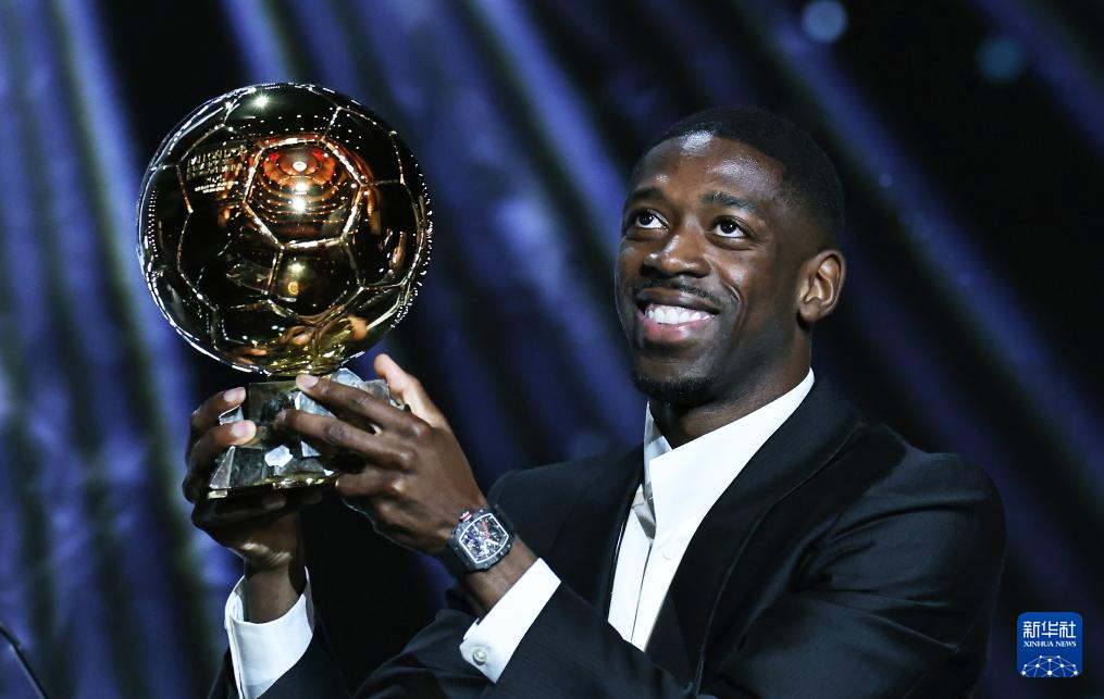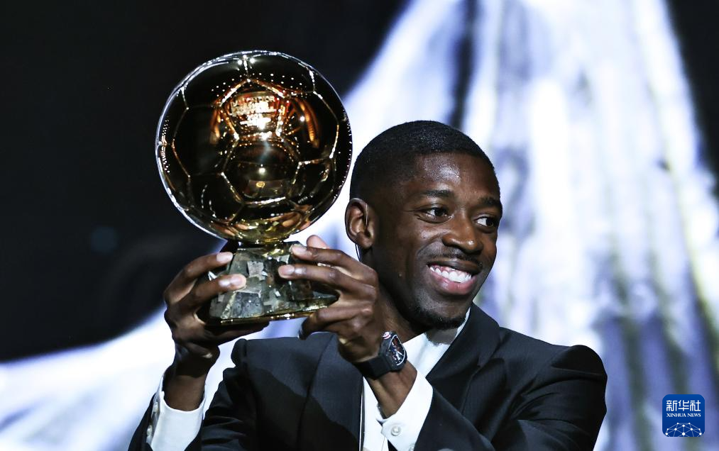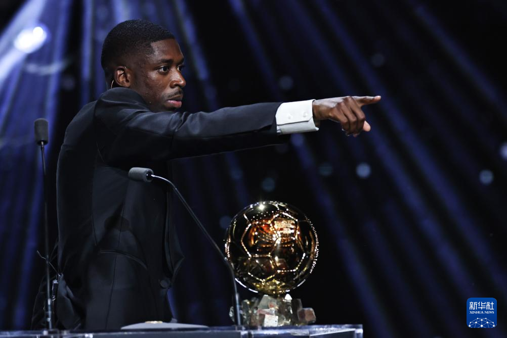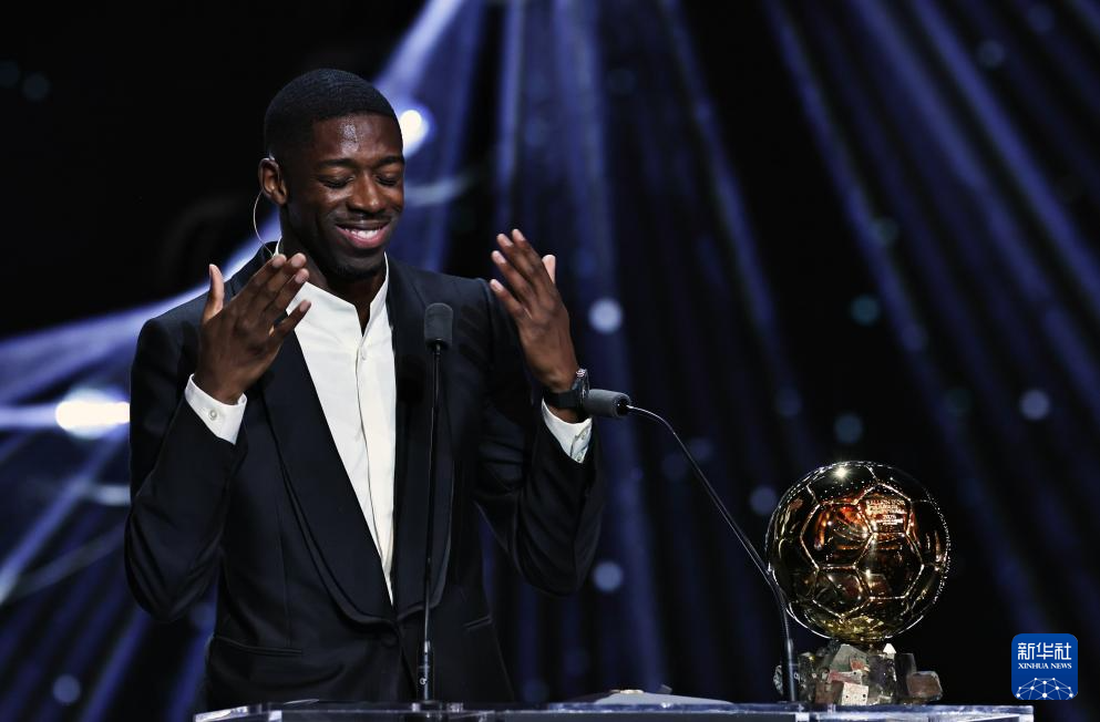 9月22日,巴黎圣日耳曼隊法國球員登貝萊在頒獎儀式上。他獲頒男足金球獎。
